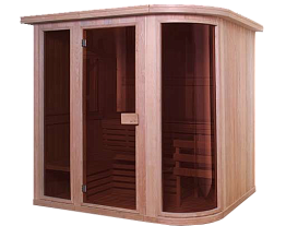 Конструкция кабин сборная, внутренняя отделка выполнена исключительно из красного канадского кедра, материала обладающего антисептическими свойствами и неповторимым ароматом эфирных масел, содержащихся в нем. Уникальное оптическое свойство канадского кедра отражать большую часть тепловых лучей позволяет добиться эффективного и равномерного распространения тепла внутри кабины. По праву считается лучшим из существующих материалов для любых саун. Внешняя отделка представлена на выбор либо панелями под бук, либо из канадского красного кедра.
